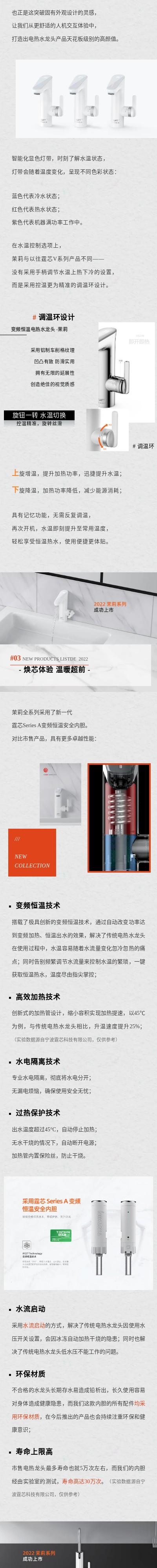 飛羽快熱本年度的新品茉莉系列重磅來襲!生活瞬息萬變,溫度恒定不變,相信在未來的發展中,飛羽快熱將持續研發出更多兼具時尚和實用性的即熱式產品,讓中國千萬家庭都能過上更加美好的溫暖生活。